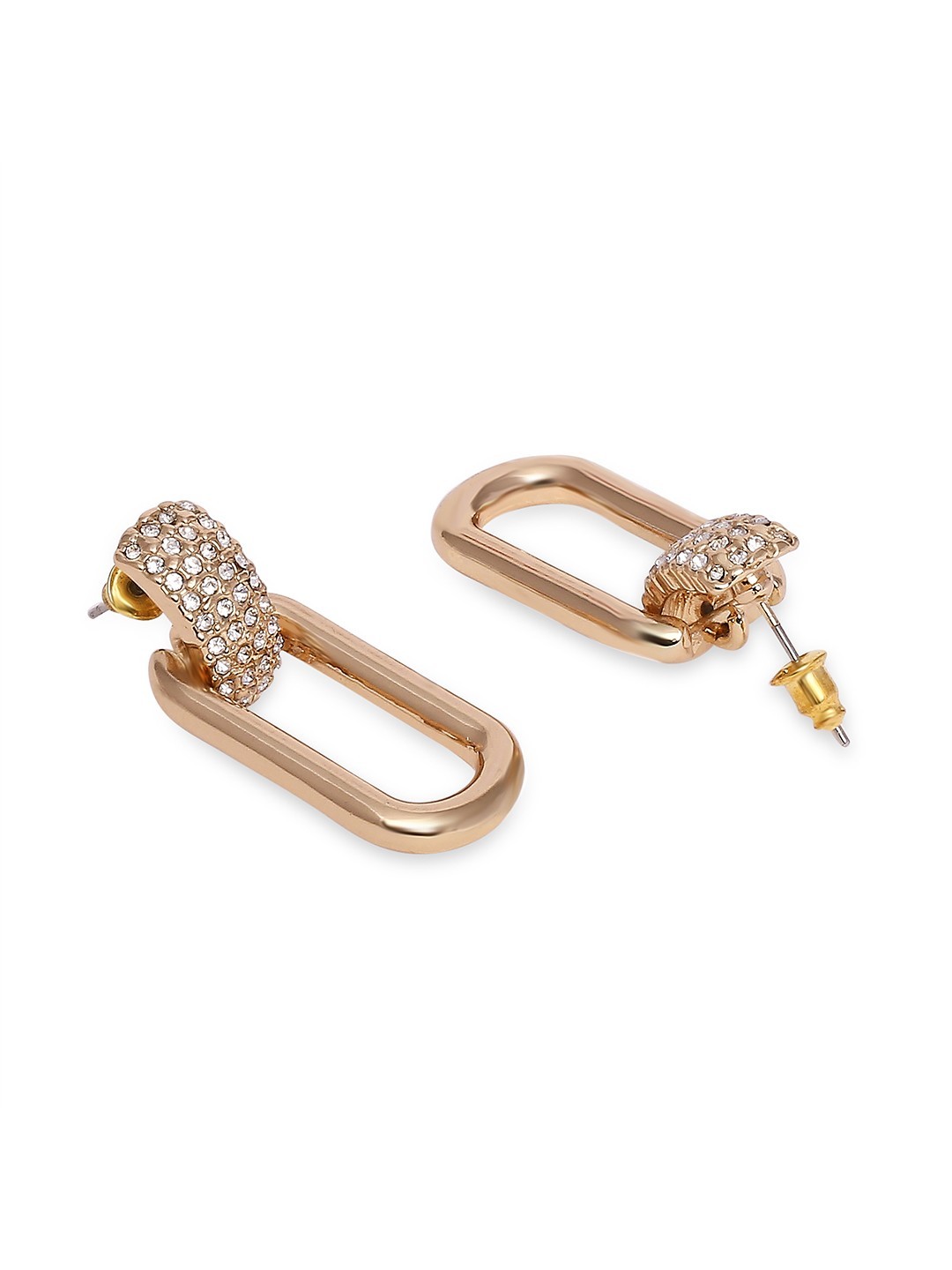 Gold toned crystals studded contemporary drop earrings